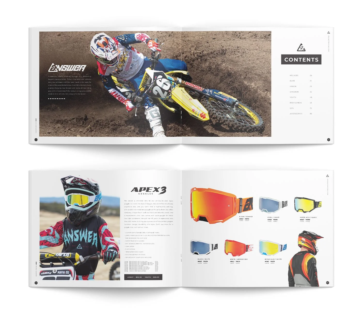 Answer Racing is a brand that makes motocross clothing and gear, recognized for its bold designs and emphasis on performance. Established in 1976, it provides a variety of products for dedicated motocross fans, such as jerseys, pants, gloves, and helmets. Their items are built to withstand the rigors of motocross riding, using tough materials and smart features for comfort and safety.
